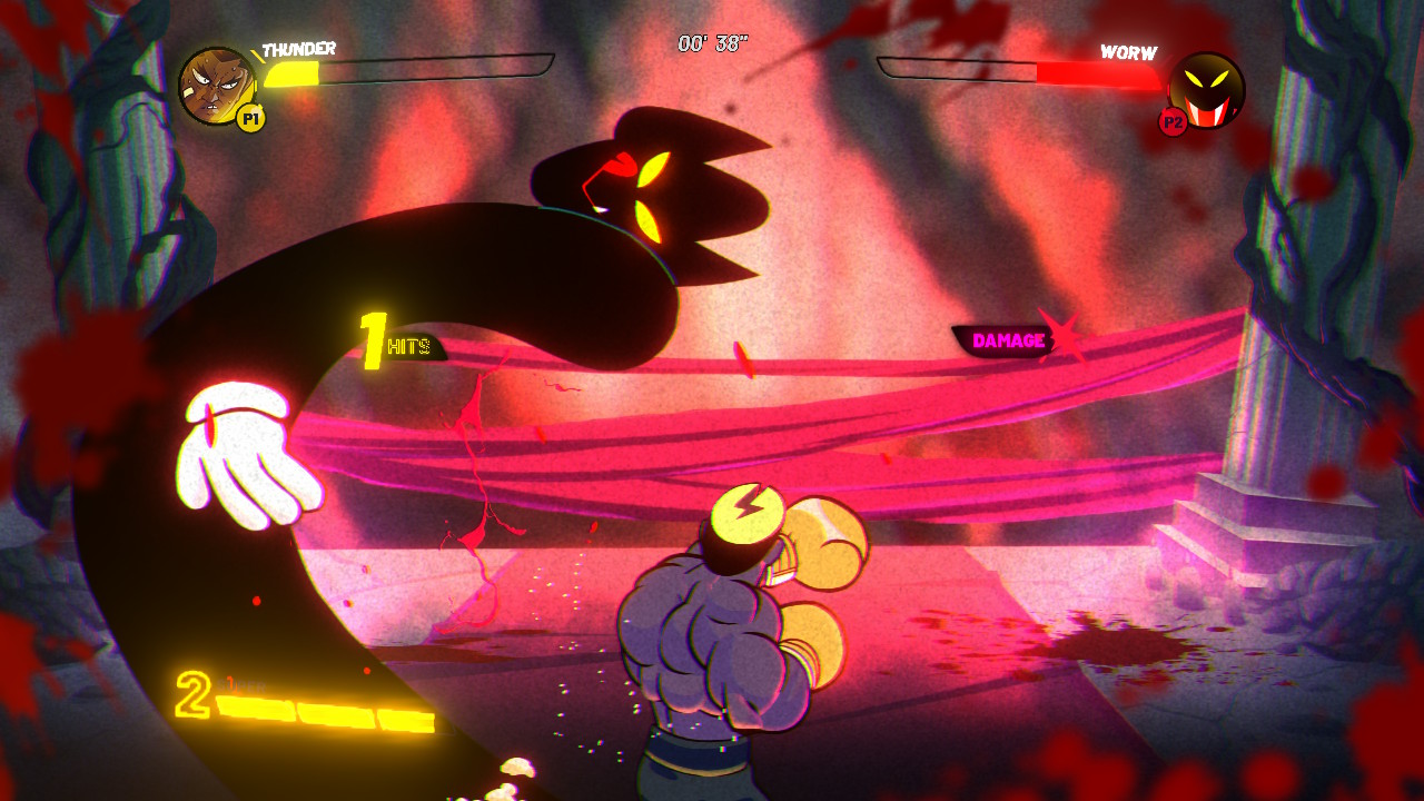 The game features at total of 11 fights. Eight of these are in the main game and the additional three are in the Origins DLC included in this package. Each fight has different gimmicks for you to overcome. Some fighters will cast spells or have magical barriers, while others may give you status effects like confusion that reverses your controls, or poison which – as you would figure – constantly drains your health. This makes it very important to either block, duck, or dodge whatever these foes throw at you and counter attack. Once you knock your opponent down three times you win and Ray will end them in an over-the-top and gory fashion. But if you get knocked down, you lose and will have to try the bout again. The real problem is the controls here feel very heavy at times, and I had a very hard time dodging some of these. The last bosses in each mode gave me a ton of trouble even on the easiest setting.