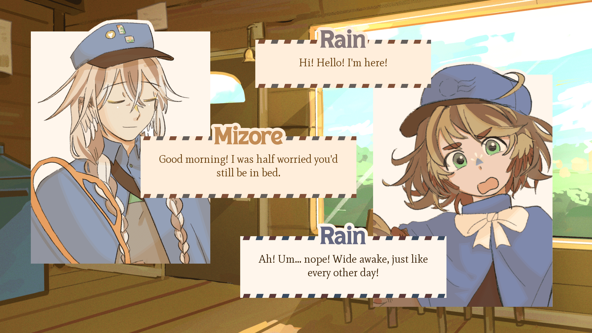 On the outskirts of a small village stands the Mortem Post, a massive tree which receives and delivers letters from those who have passed on. Deciding to break protocol to lend a helping wing, Rain, a flighty little courier takes a skittish girl by the name of Mila on an adventure through the inner workings of the post office. Together, they search for a letter containing the last words of someone who seemingly never existed.